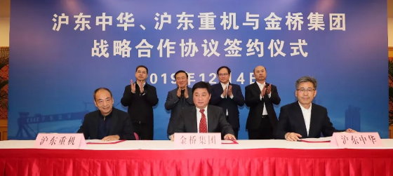 ????在楊金成、翁祖亮、馮永強(qiáng)、杭迎偉的共同見證下,中國船舶集團(tuán)旗下滬東中華造船(集團(tuán))有限公司、滬東重機(jī)有限公司與上海金橋(集團(tuán))有限公司簽訂了戰(zhàn)略合作協(xié)議。