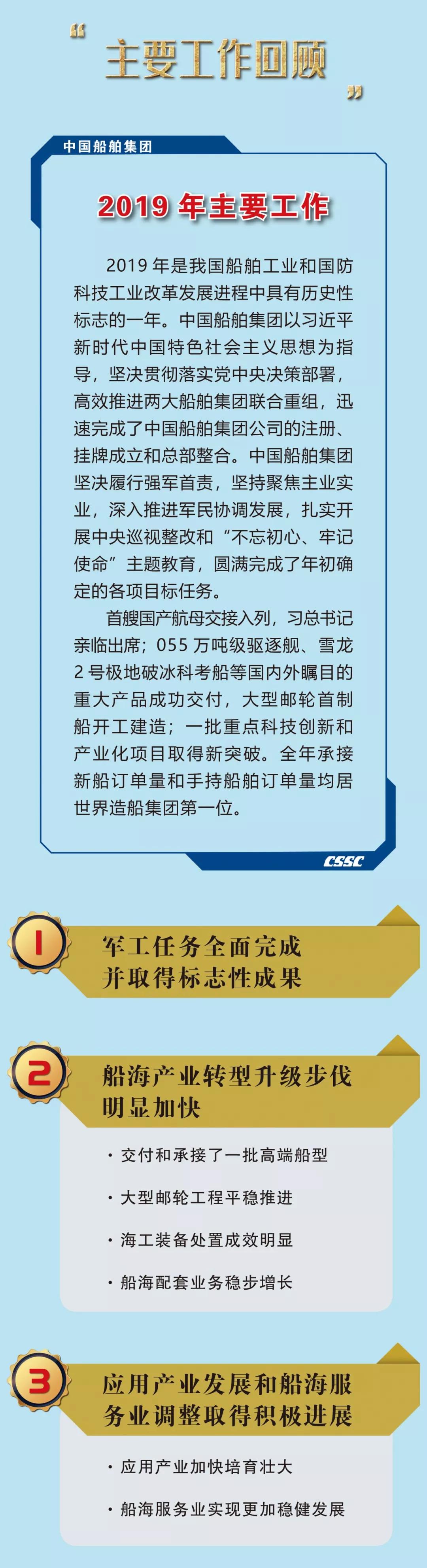 ??1月19日,在中國船舶集團有限公司2020年度工作會議上,中國船舶集團黨組書記、董事長雷凡培作了題為《以習近平總書記重要指示為統(tǒng)領 奮力開啟建設世界一流船舶集團新征程》的工作報告。