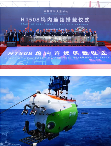 2020年,中國(guó)船舶集團(tuán)在科技創(chuàng)新方面取得重要突破,核心競(jìng)爭(zhēng)力持續(xù)提升。“奮斗者”號(hào)載人潛水器在馬里亞納海溝10909米處成功坐底,實(shí)現(xiàn)了中國(guó)載人深潛首次萬(wàn)米突破;船用低速機(jī)工程原理樣機(jī)、工程樣機(jī)、關(guān)重件樣件試驗(yàn)驗(yàn)證取得新成果;與廣東省簽訂船舶LNG動(dòng)力改造項(xiàng)目合作框架協(xié)議。在持續(xù)推進(jìn)自主可控工程與關(guān)鍵核心技術(shù)攻關(guān)方面,中國(guó)船舶集團(tuán)承擔(dān)多項(xiàng)攻關(guān)任務(wù)實(shí)現(xiàn)關(guān)鍵核心技術(shù)突破。在軍民品科研開(kāi)發(fā)、先進(jìn)制造技術(shù)研發(fā)應(yīng)用、科技創(chuàng)新基礎(chǔ)夯實(shí)方面,中國(guó)船舶集團(tuán)也開(kāi)展了大量工作,并取得顯著成效。