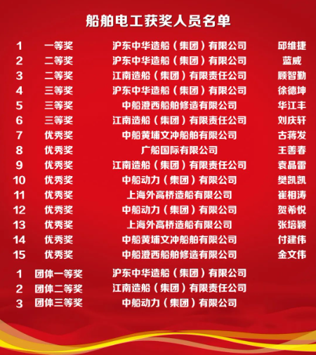 本次競(jìng)賽項(xiàng)目既有船舶行業(yè)主體工種——船舶電工,又有現(xiàn)代制造業(yè)重要工種——加工中心操作調(diào)整工。競(jìng)賽由滬東中華、707所承辦,上海公司協(xié)助負(fù)責(zé)保密監(jiān)督工作;競(jìng)賽首次全部采用第三方裁判,進(jìn)一步提升執(zhí)裁專業(yè)性和公正性。來(lái)自40家成員單位共計(jì)120名選手同臺(tái)角逐,最終評(píng)選出個(gè)人及團(tuán)體一、二、三等獎(jiǎng)和個(gè)人優(yōu)秀獎(jiǎng),優(yōu)秀組織獎(jiǎng)等獎(jiǎng)項(xiàng)。參賽選手們相互學(xué)習(xí)交流、深入切磋技藝,展現(xiàn)了中國(guó)船舶技能人才頑強(qiáng)拼搏、追求卓越的良好精神面貌。