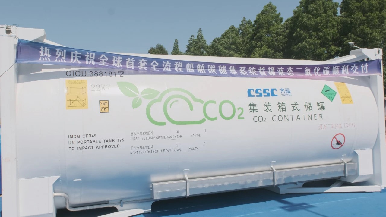 2024年5月10日,“全球首套全流程船舶碳捕集系統首罐液態二氧化碳接收儀式暨交流會” 在上海舉辦,中國船舶集團所屬上海齊耀環保科技有限公司將岸端卸載的首罐液態二氧化碳正式交付使用方,標志著船用碳捕集技術在全球范圍內首次完成“二氧化碳捕集-液化存儲-卸岸-轉運-再利用”的全流程生態閉環,成為船用碳捕集產業里程碑式的案例。