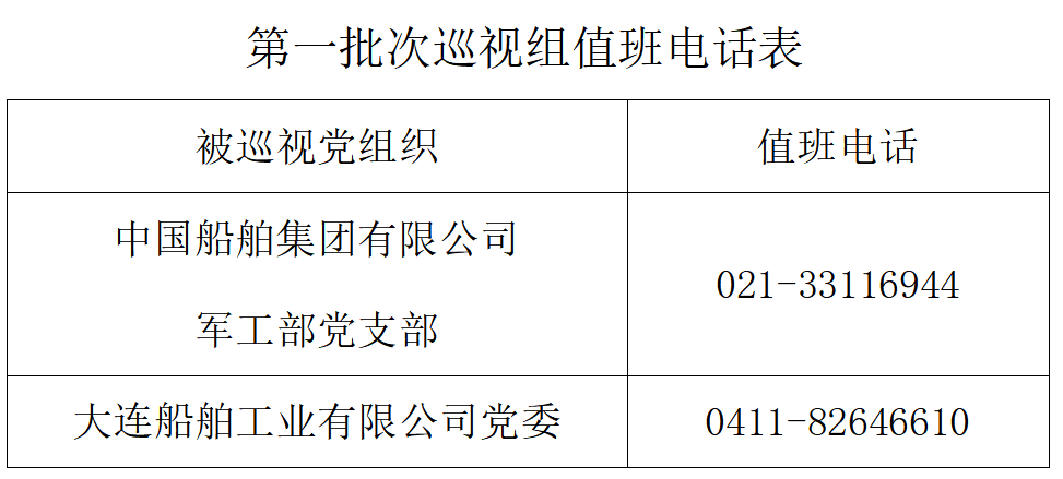 巡視期間,集團公司黨組巡視組設置值班電話和聯系信箱,主要受理反映被巡視黨組織領導班子及其成員、下一級黨組織領導班子主要負責人和重點崗位領導干部問題的來信、來電、來訪,重點關注違反政治紀律、組織紀律、廉潔紀律、群眾紀律、工作紀律、生活紀律以及巡視整改等方面問題反映。第一批次巡視受理信訪截止時間為4月16日。
