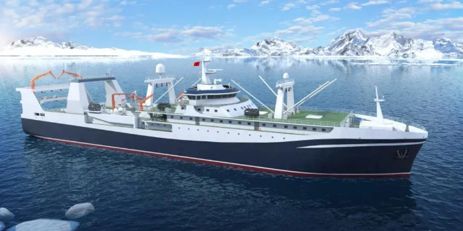 由七〇一所武船院設(shè)計的該系列南極磷蝦捕撈加工船排水量近2萬噸,采用先進的連續(xù)捕撈系統(tǒng)及現(xiàn)代化生產(chǎn)流水線,是我國目前已啟動最大最先進的南極磷蝦捕撈加工船,建成后將填補我國在南極磷蝦高端漁船設(shè)計領(lǐng)域的空白,為我國開發(fā)南極磷蝦產(chǎn)品提供裝備保障。