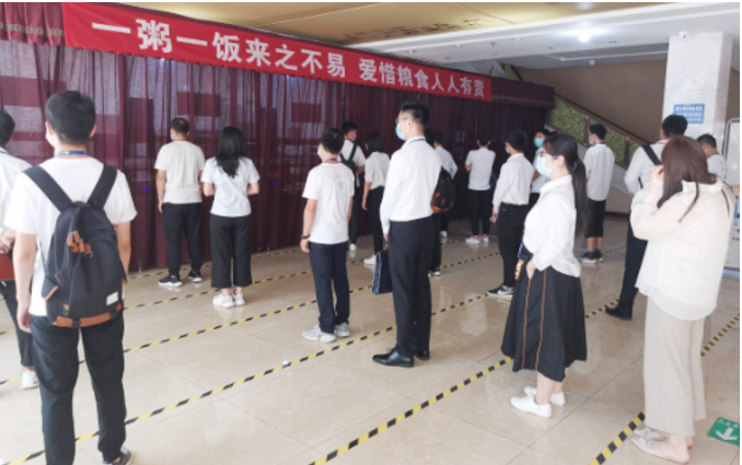 午飯時(shí)間,七一六所食堂門口一場(chǎng)“光盤行動(dòng)”宣傳活動(dòng)正如火如荼進(jìn)行。發(fā)放節(jié)約糧食、反對(duì)浪費(fèi)宣傳冊(cè),引導(dǎo)職工參與光盤行動(dòng)簽字活動(dòng)……在食堂取餐窗口,職工們秩序井然,按需取餐。在收殘?zhí)帲毠儗⒊愿蓛舻目胀氡P有序放到傳送帶上,見此情形,值守在此處的志愿者快步迎上去,為光盤的職工佩戴一枚特制的紀(jì)念章。隨著疫情防控形勢(shì)變化,七一六所增加自選餐窗口,減少套餐窗口。一增一減,讓員工吃飯有了更多自主權(quán)。吃多少拿多少,自8月增加自選餐以來,職工光盤率顯著提高。同時(shí),改變打餐就餐方式后,打包餐盒使用量也減少到以前的1/10,食堂食材使用率也明顯提升。