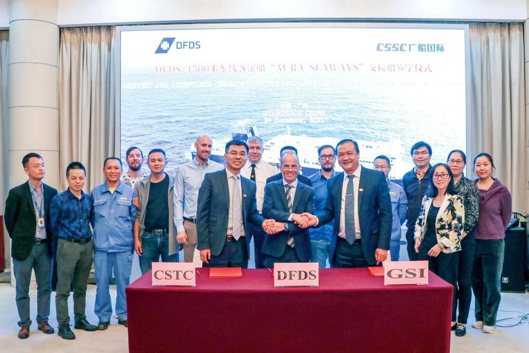12月9日,由中國船舶集團旗下廣船國際聯(lián)合中船貿(mào)易為北歐最大的航運和物流公司,丹麥DetForenede Dampskibs-Selskab(簡稱:DFDS)航運公司建造的600客/4500米車道豪華客滾船首制船實現(xiàn)“云交付”。