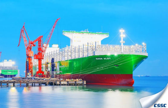 滬東中華完工交付中國首艘全球最大24000TEU超大型集裝箱船,作為目前全球裝箱量最大的集裝箱船,她具備“帶貨王”、“節能強”、“宜居佳”的特征,被譽為海上“巨無霸”。