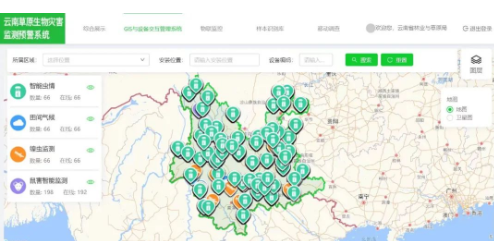 新建的云南草原有害生物災害省級監測預警中心、區域監測預警中心和縣級測報點三級聯動系統,可有效提高云南省草原生物災害監測范圍和監測能力,實現了云南省主要草原生物災害監測的規范化、數字化、智能化、可視化,提高了草原生物災害預測預報的準確性,以及應對重大草原生物災害應急反應能力,并可為相關行業與部門的有效防治決策與管理提供可靠的數據支撐。