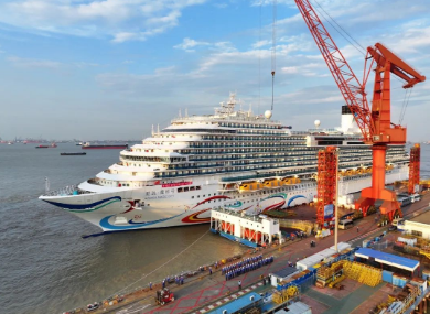 7月24日,在斑斕的晚霞照耀下,首艘國產大型郵輪“愛達·魔都號”更顯得楚楚動人,在拖輪的牽引下,她緩緩地靠泊于中國船舶集團旗下外高橋造船4號碼頭,宣告經過八天七夜的海上航行圓滿完成了第一次試航所有的試驗項目,比原計劃提前一天凱旋,標志著中國制造的首艘大型郵輪實現了從藍圖到藍海,從上海到海上的里程碑跨越,距年底命名交付的總目標,又向前邁出了歷史性的一大步。