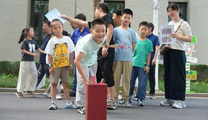 在講解員引導下,家屬們先后走進七二五所所部科技展廳與第六研究室,系統(tǒng)了解研究所六十余載發(fā)展歷程、研究領(lǐng)域、前沿技術(shù)攻關(guān)。從國家科技進步獎獲獎項目到“大國重器”關(guān)鍵材料突破,家屬們深刻感受到“艱苦創(chuàng)業(yè)、勇攀高峰”的奮斗者文化傳承。在親子活動區(qū),“趣味投壺”“瘋狂九宮格射門”“百步穿楊”“急速投籃”等4項趣味游戲,瞬間點燃了職工與家屬們的參與熱情,大家紛紛組隊,積極投入到游戲中,通過趣味互動,進一步加深彼此間的理解與默契,情感也在歡聲笑語中得到了升華。