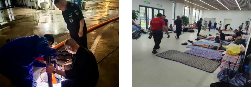 第一時間啟動防汛防臺緊急預(yù)案,向全體員工發(fā)出動員令。相關(guān)部門深入現(xiàn)場檢查設(shè)備設(shè)施,排除風險隱患。針對低洼易積水區(qū)域開展“竹節(jié)草”臺風前安全專項檢查,確保室外門能關(guān)盡關(guān),同步組織排查所有易松動和易掉落物料的清理;在樓宇門口設(shè)置防汛沙袋,做好防水工作;在動力作業(yè)區(qū),開展變電站防汛沙袋布置和水位檢查等,確保現(xiàn)場安全。
