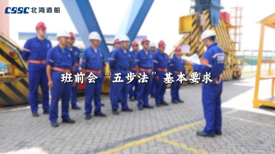 一點名,二講評,三交底,四確認(rèn),五承諾。北海造船制作了班前會“五步法”指導(dǎo)視頻及手冊,以直觀的聲畫形式,精準(zhǔn)指導(dǎo)各個班組規(guī)范召開班前會。目前,北海造船1000余個班組已全面落實班前會“五步法”管理要求。