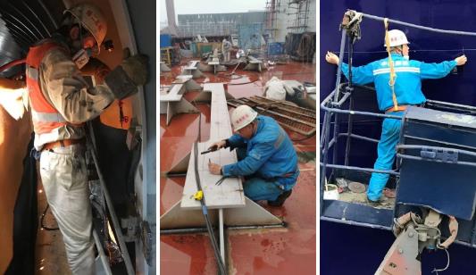????疫情期間,為了追趕出塢節(jié)點,江南造船建造團隊積極與外籍船東監(jiān)造組成員和服務商溝通,嘗試自主施工并細化監(jiān)督措施
