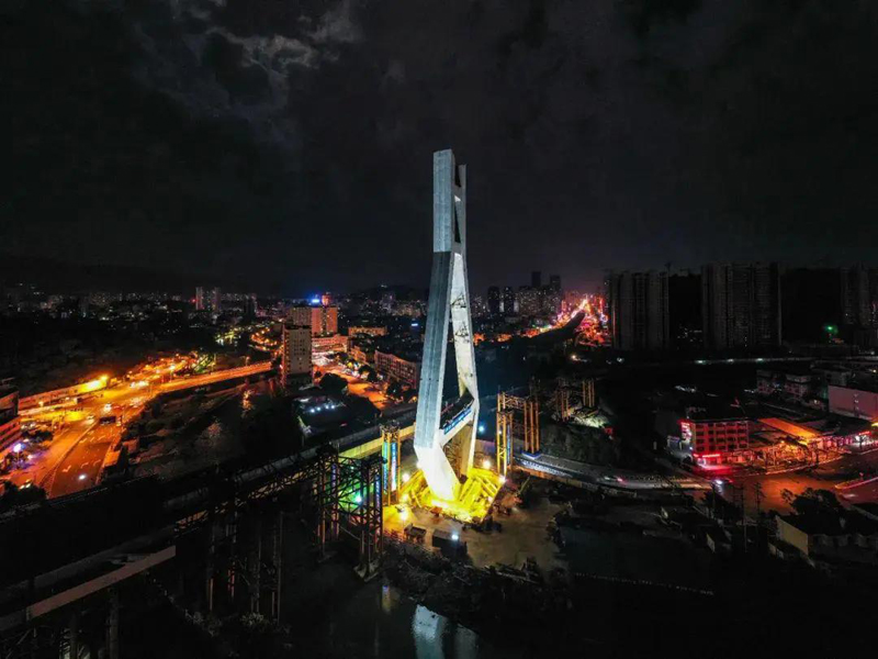 4月10日龍巖大橋主塔轉體完成