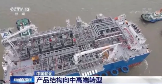 這是中國船舶江南造船成功交付的28000立方米LNG浮式再氣化單元,也就是從海上運來的液化天然氣,通過這艘船再還原成氣體,整個轉化過程都在海上進行,被譽為海上液化氣工廠,目前只有中國可以建造這樣的船舶,而其中最關鍵的技術就是海上固定系統。