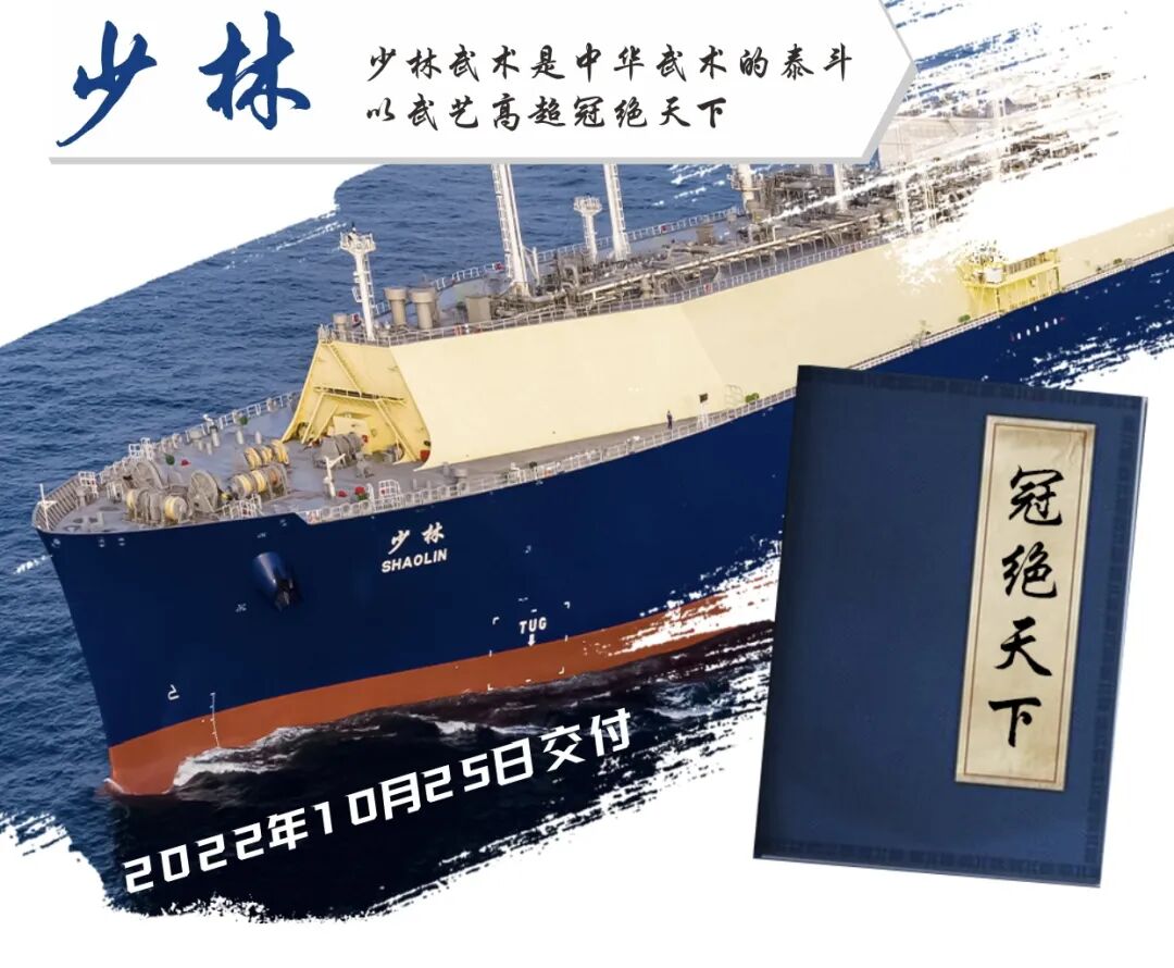 “少林”號是中國船舶聯袂中國石油、中遠海運共同打造的首個純中國背景的 LNG運輸項目首制船,實現了中國租家、中國船東、中國造船、中國融資、中國監造、中國船管、中國保險,對推進中國LNG產業鏈供應鏈健康發展具有重要意義。