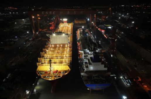 本次出塢的整船是江南造船為新加坡太平船務建造的14000TEU LNG雙燃料集裝箱船系列船第二艘;起浮的一艘整船是17.5萬立方米大型LNG運輸船系列船第二艘,兩艘半船分別是為新加坡太平船務建造的14000TEU LNG雙燃料集裝箱船系列船第三艘的艏、艉半船和第四艘的燃料艙環段。